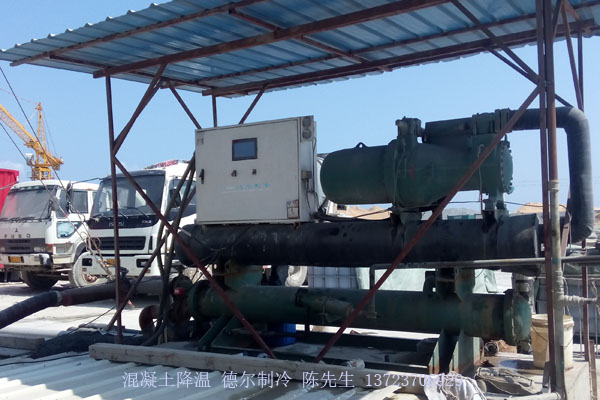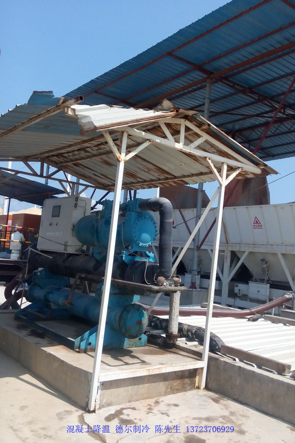 簡陋的雨棚下,我司混凝土專用冷水機(jī)發(fā)揮重要作用